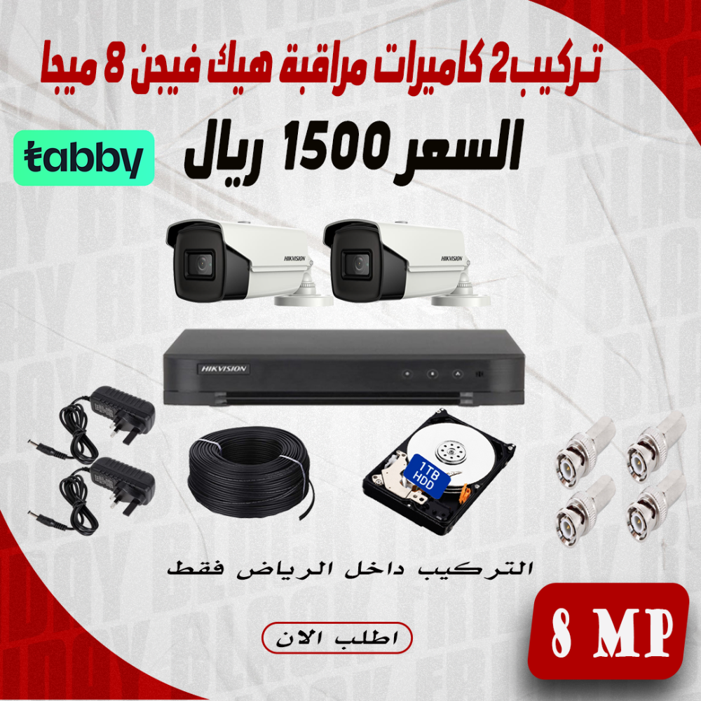 عرض تركيب 2 كاميرا 8 ميجا رؤية ليلية 60 متر 4K هيك فيجن انالوج داخل مدينة الرياض