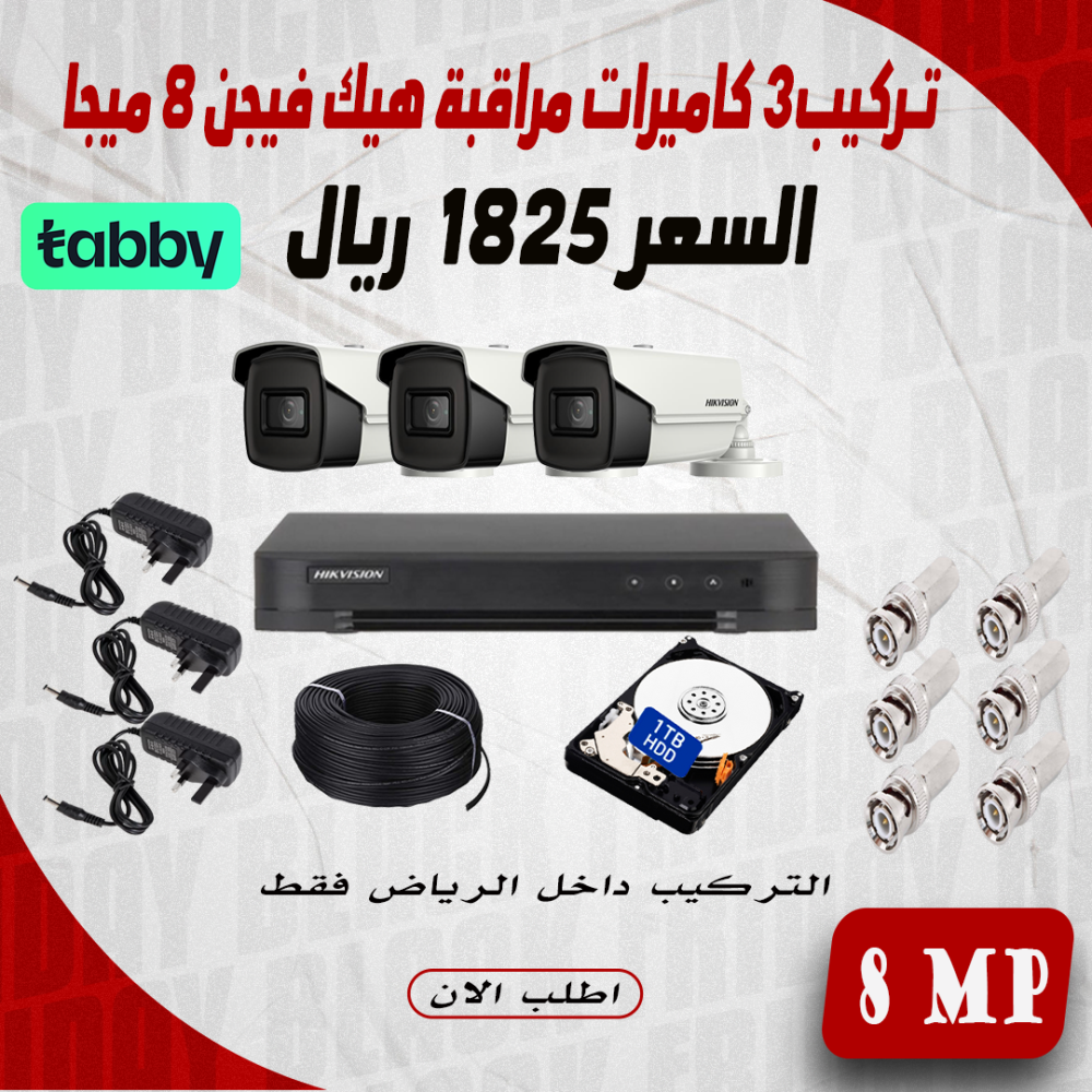 عرض تركيب 3 كاميرا 8 ميجا رؤية ليلية 60 متر 4K هيك فيجن انالوج داخل مدينة الرياض