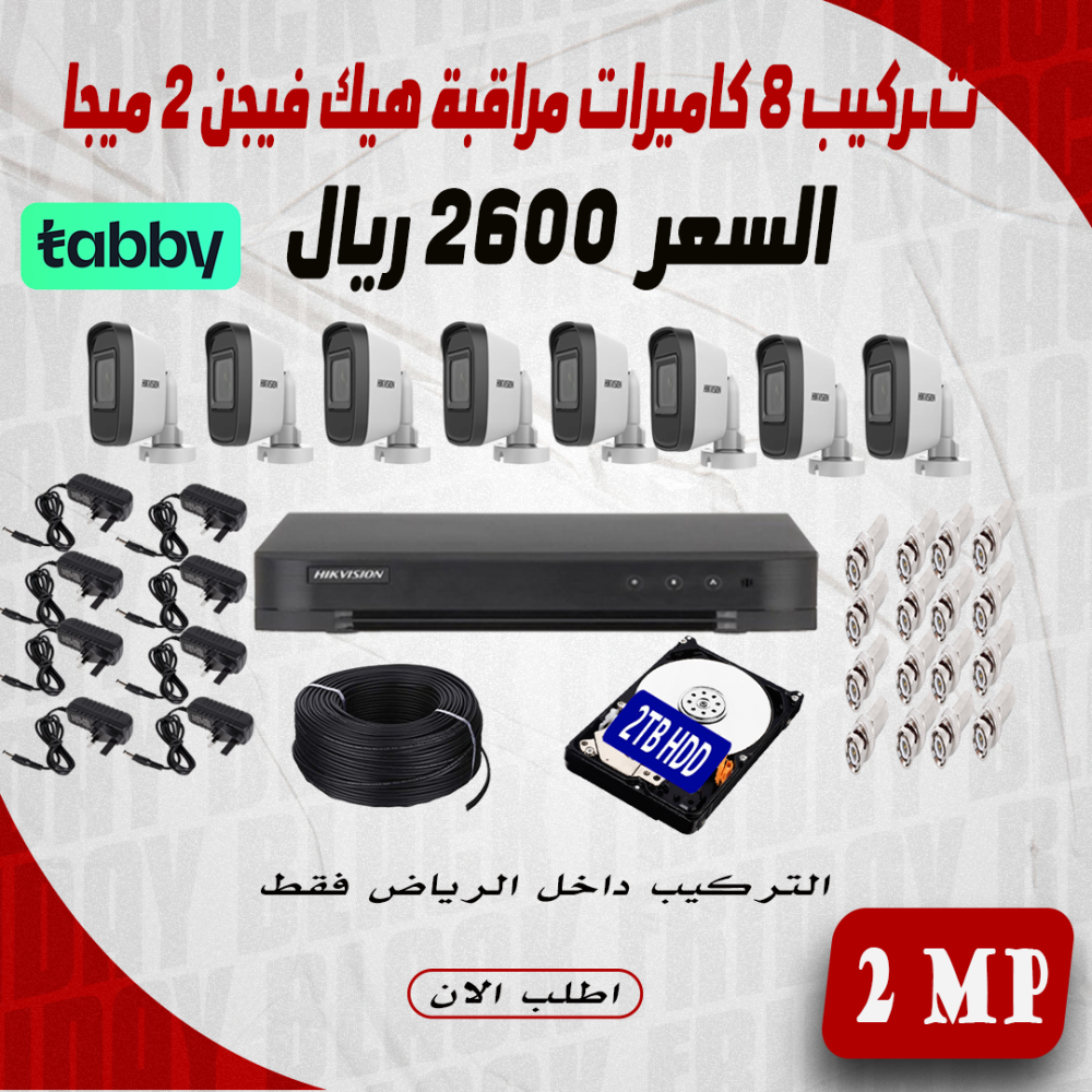 عرض تركيب 8 كاميرا 2 ميجا رؤية ليلية 20 متر هيك فيجن انالوج داخل مدينة الرياض